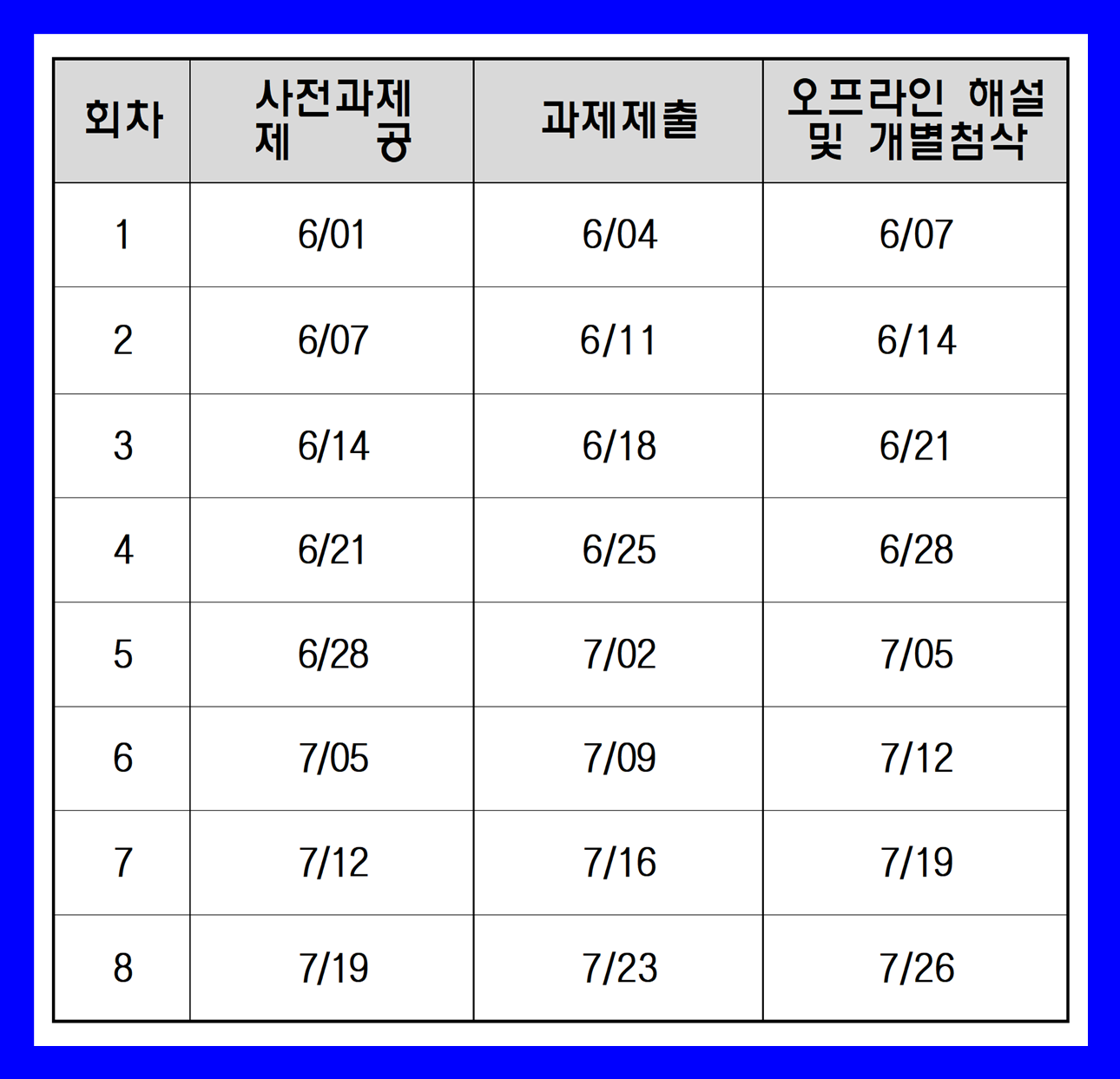 사전 과제 제출을 기반으로 수업이 진행되며, 미제출 시 수업 이해가 어려울 수 있습니다.