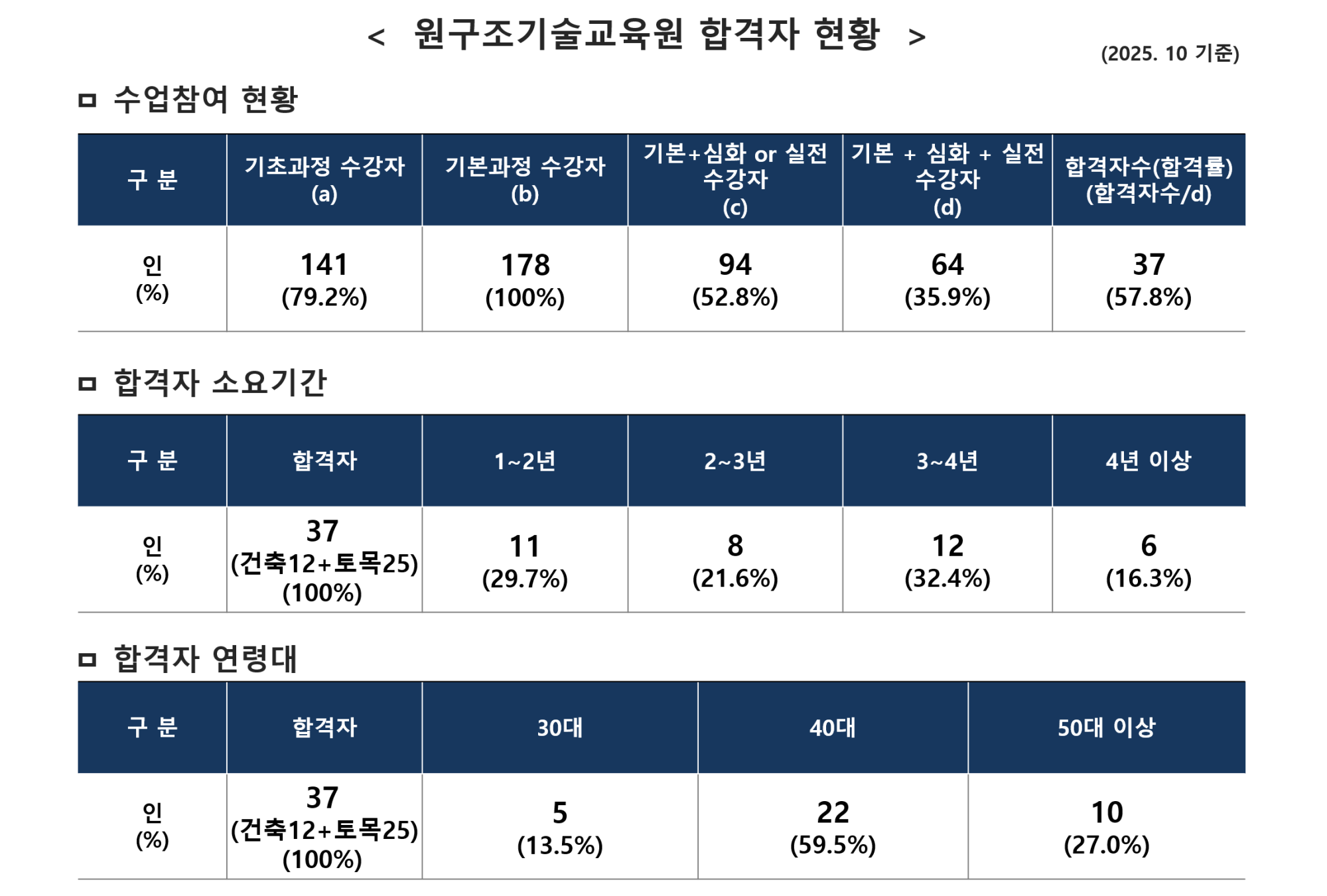 원구조기술교육원 합격자 현황(2025년 10월 기준)
