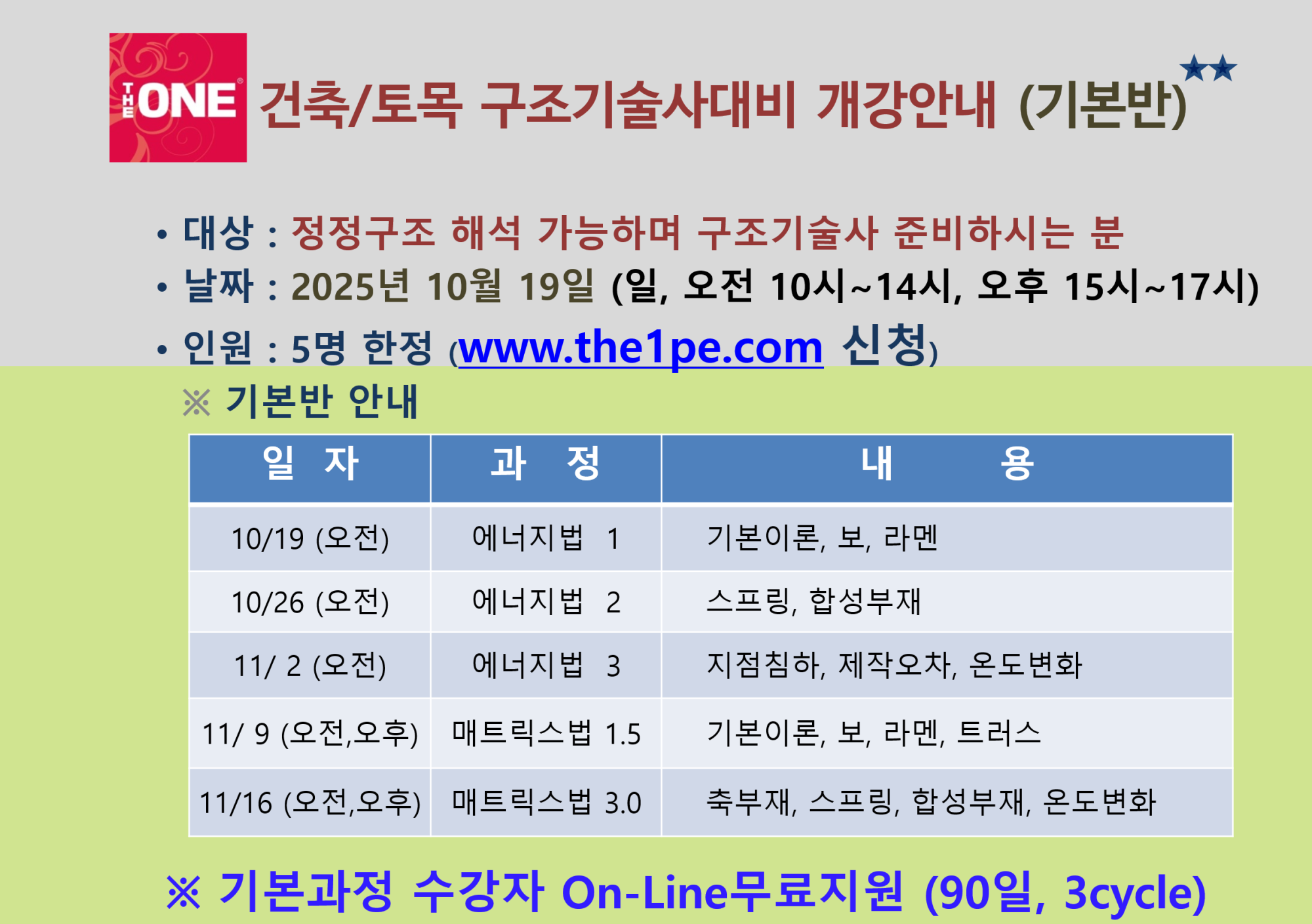 2. 학습 중 부족한 기초사항은 온라인에서 진행되는 “구조기술사 기초반”